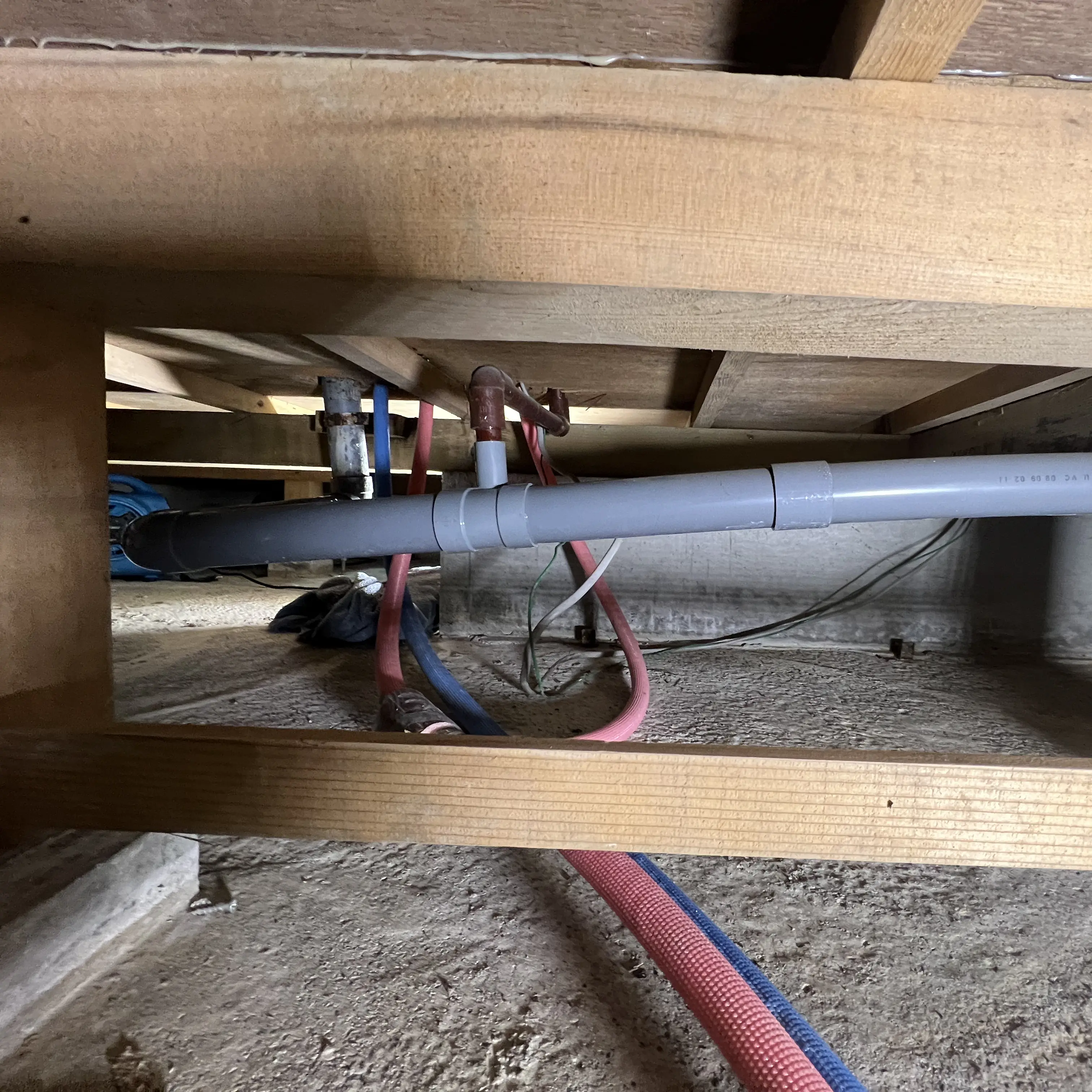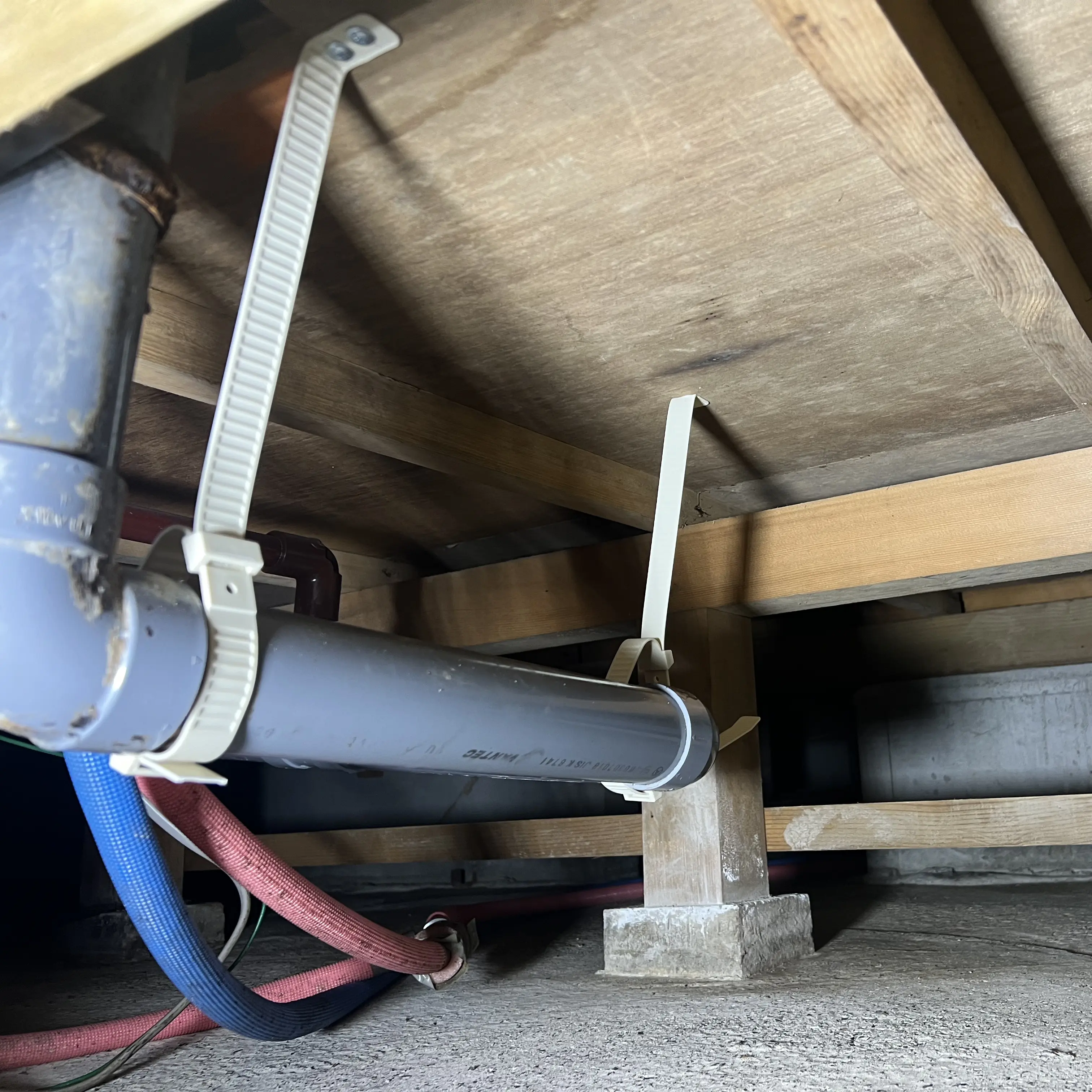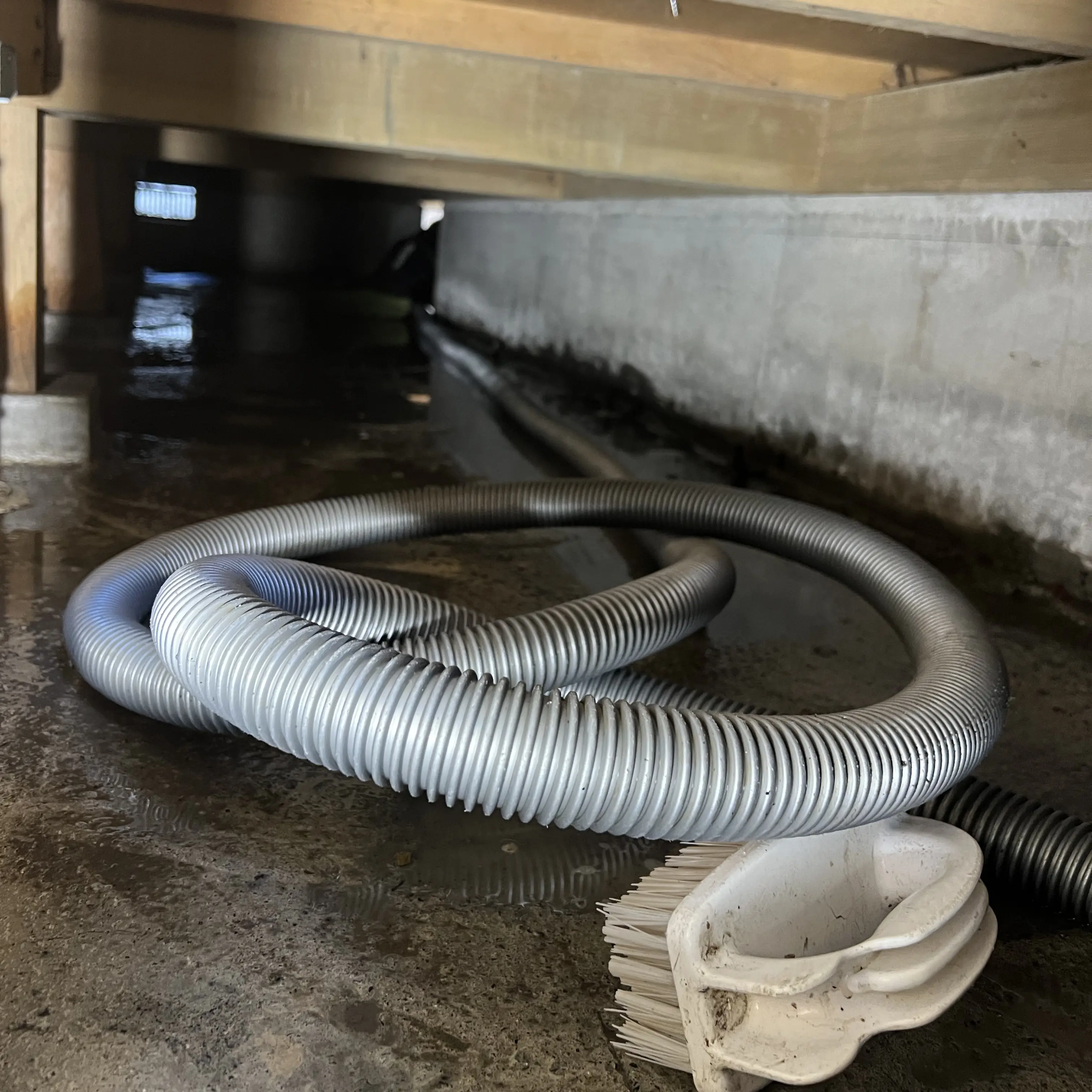 群馬県太田市の戸建住宅にて、キッチン排水管の漏水により床下に汚水溜水・高湿度・悪臭が発生。二次被害(カビ・腐朽・シロアリ)を抑えるため、速やかに排水・吸水 → 高圧バイオ洗浄 → 乾燥・除湿 → 消毒・防カビ → オゾン燻蒸の順で復旧しました。