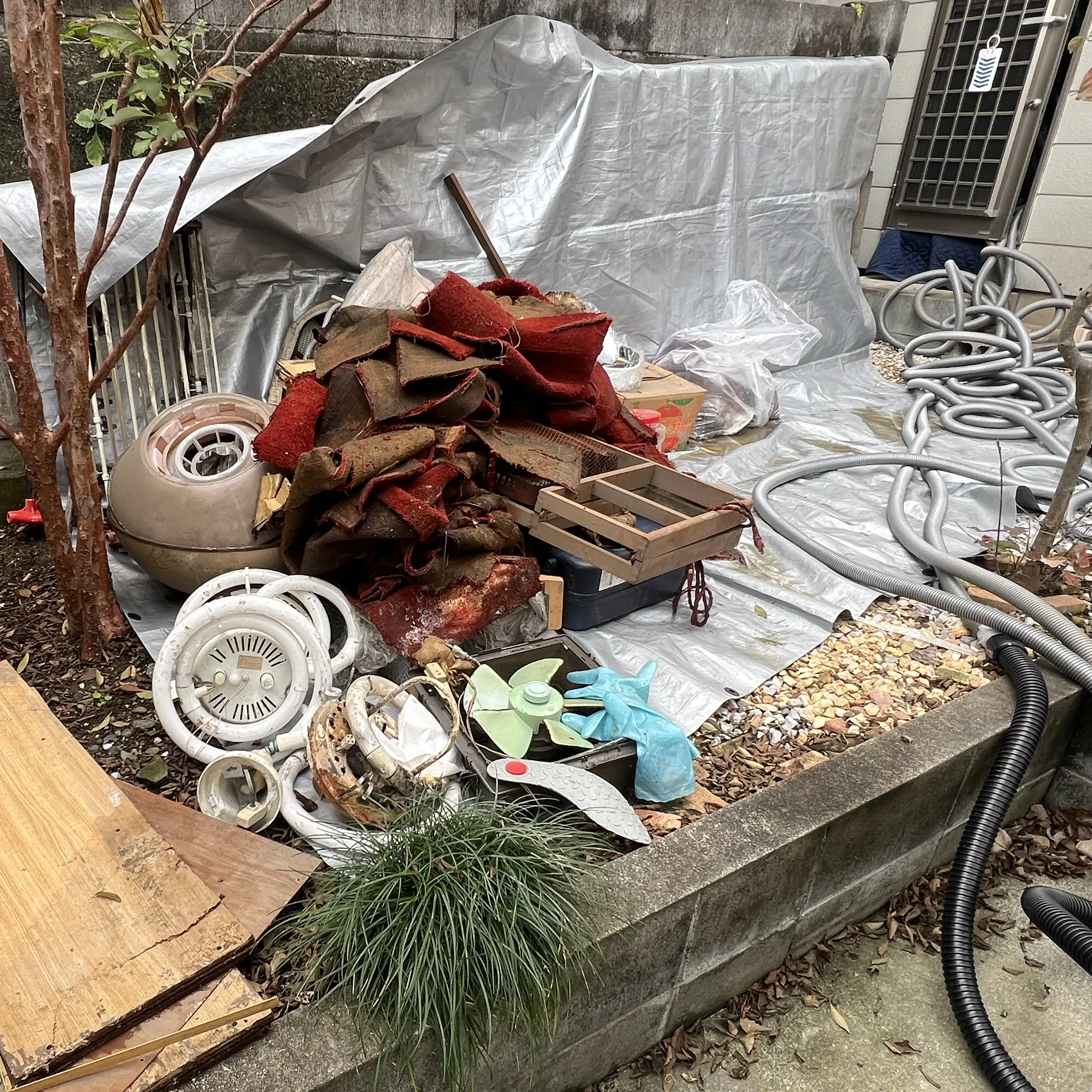 本邸においては床下を物置として利用されている経緯もあり、床下にある残地物が今回の浸水被害で蝶バエなど害虫の生育環境となってしまっており、大量の害虫、コバエが発生していました。