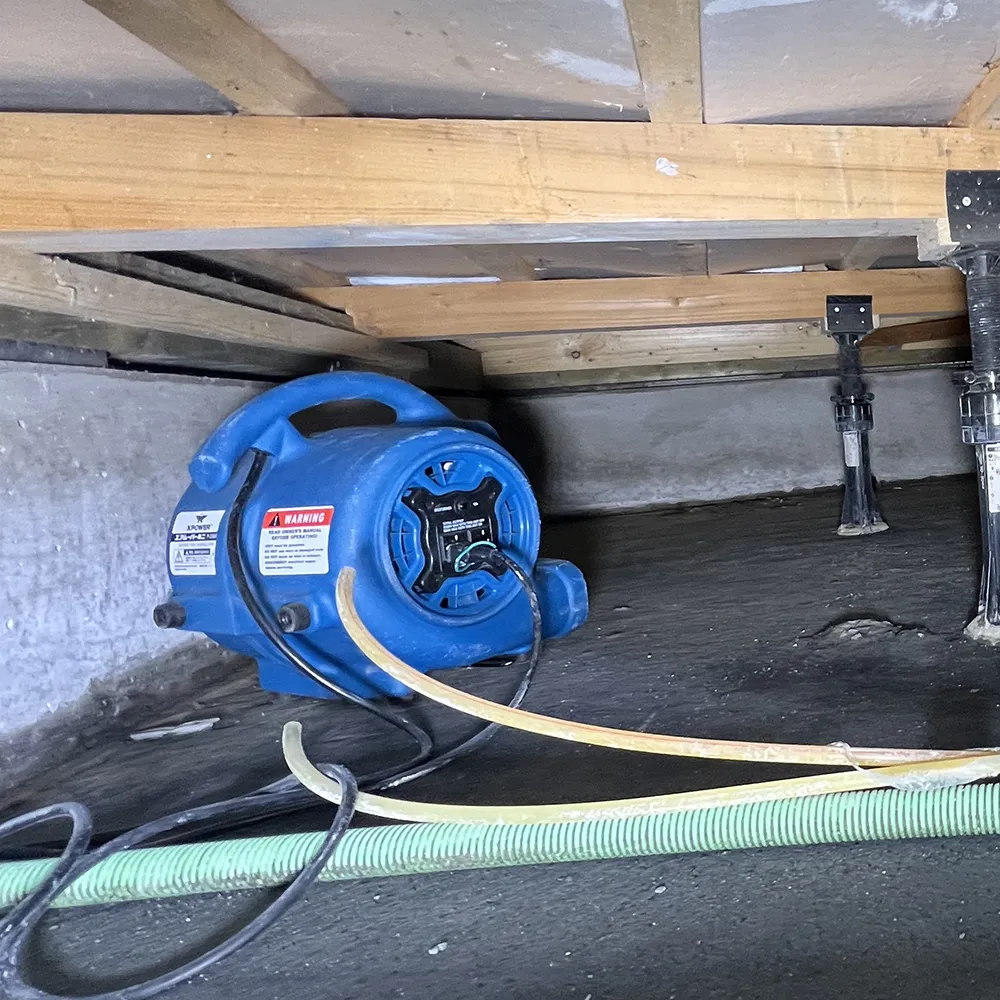 A. 日数だけの判断はおすすめしません。床下は場所によって乾き方が異なり、奥・隅・立ち上がり付近に水分が残りやすいからです。弊社では木部の含水率を指標にし、送風・除湿の配置を調整しながら乾燥完了を判定します。