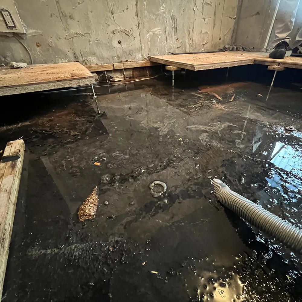 専用バキューム機を使用して床下に滞留した汚水と汚泥を回収。悪臭や害虫発生の原因を最優先で取り除き、二次汚染を防止します。