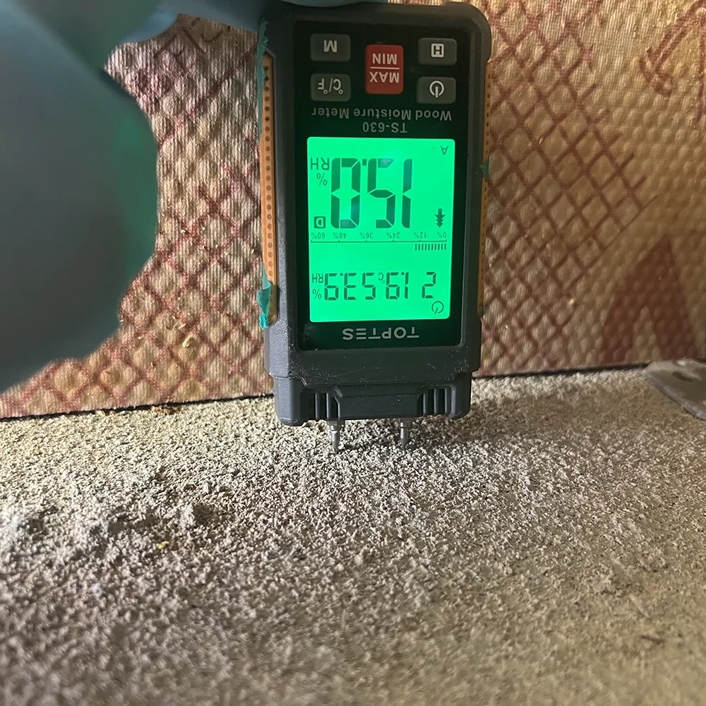 床下の浸水範囲・臭気・害虫発生状況を確認し、写真記録と含水率などの各種計測を実施。必要に応じてポンプによる応急排水を行い、復旧方針とお見積りをご提示します。