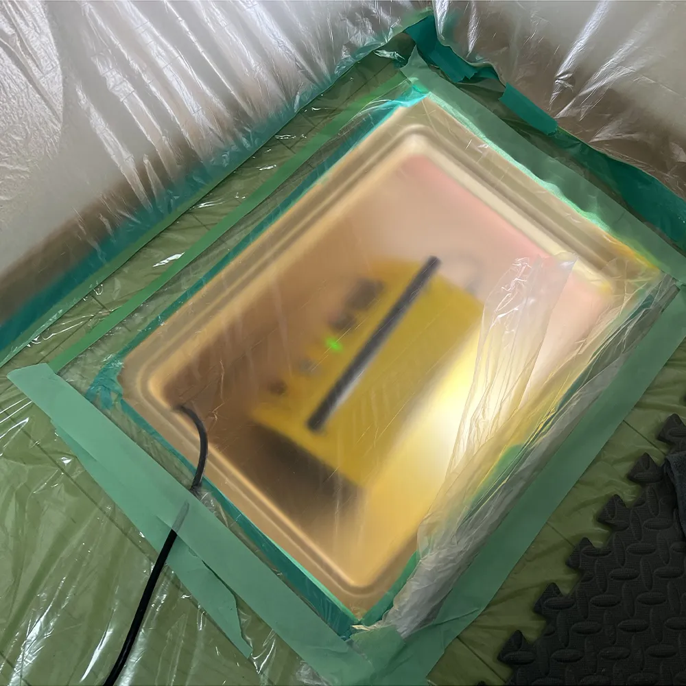 A. オゾン脱臭は仕上げ工程です。 汚水・汚泥・雑菌が残った状態で行っても効果は限定的なため、 洗浄 → 乾燥 → 消毒をすべて終えた後に実施します。 本事例では、オゾンガスにより 水災特有の残存臭気を分子レベルで分解・無臭化しました。