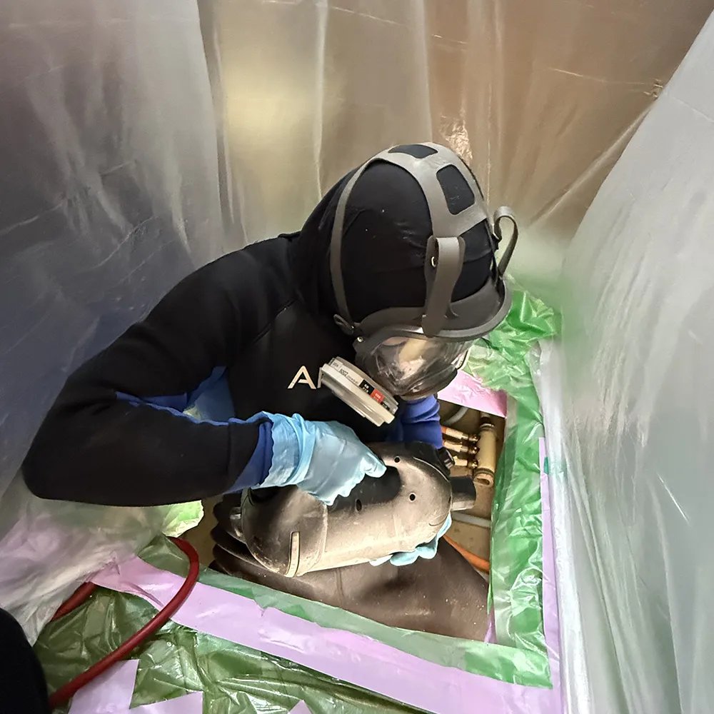 汚染状況に応じて床材や壁を解体。カビ被害の進行した建材は撤去し、適切な復旧作業が行える状態を整えます。